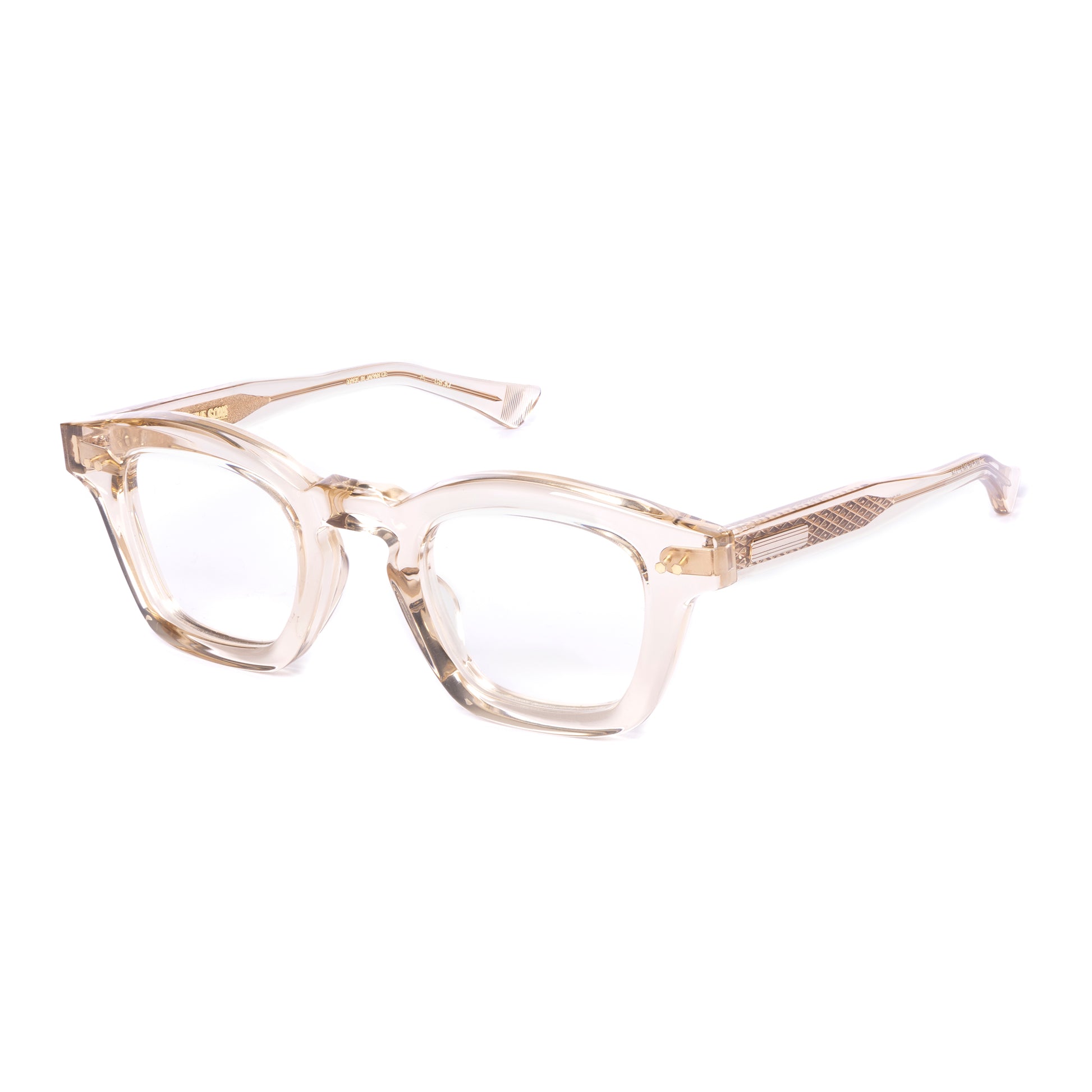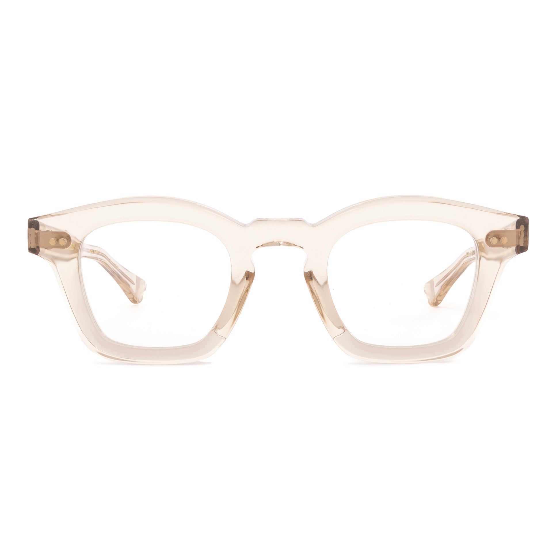 下にはキーホールがあり、レンズはおよそ46mm。高さがあり丸みを帯びつつも、リムにはしっかりとした「スクエアな顎」がある。優しさとタフさを兼ね備えたフレーム。
