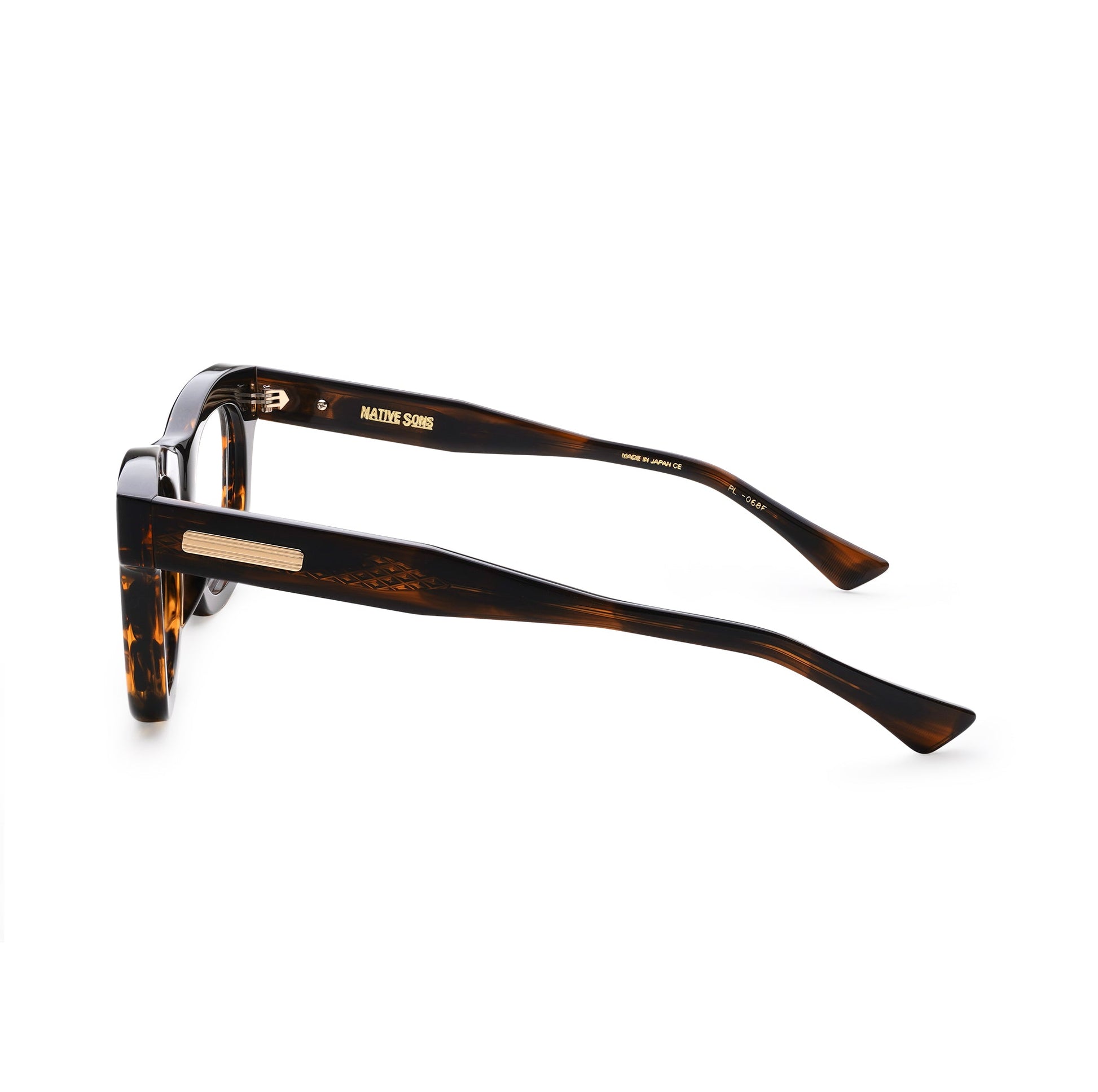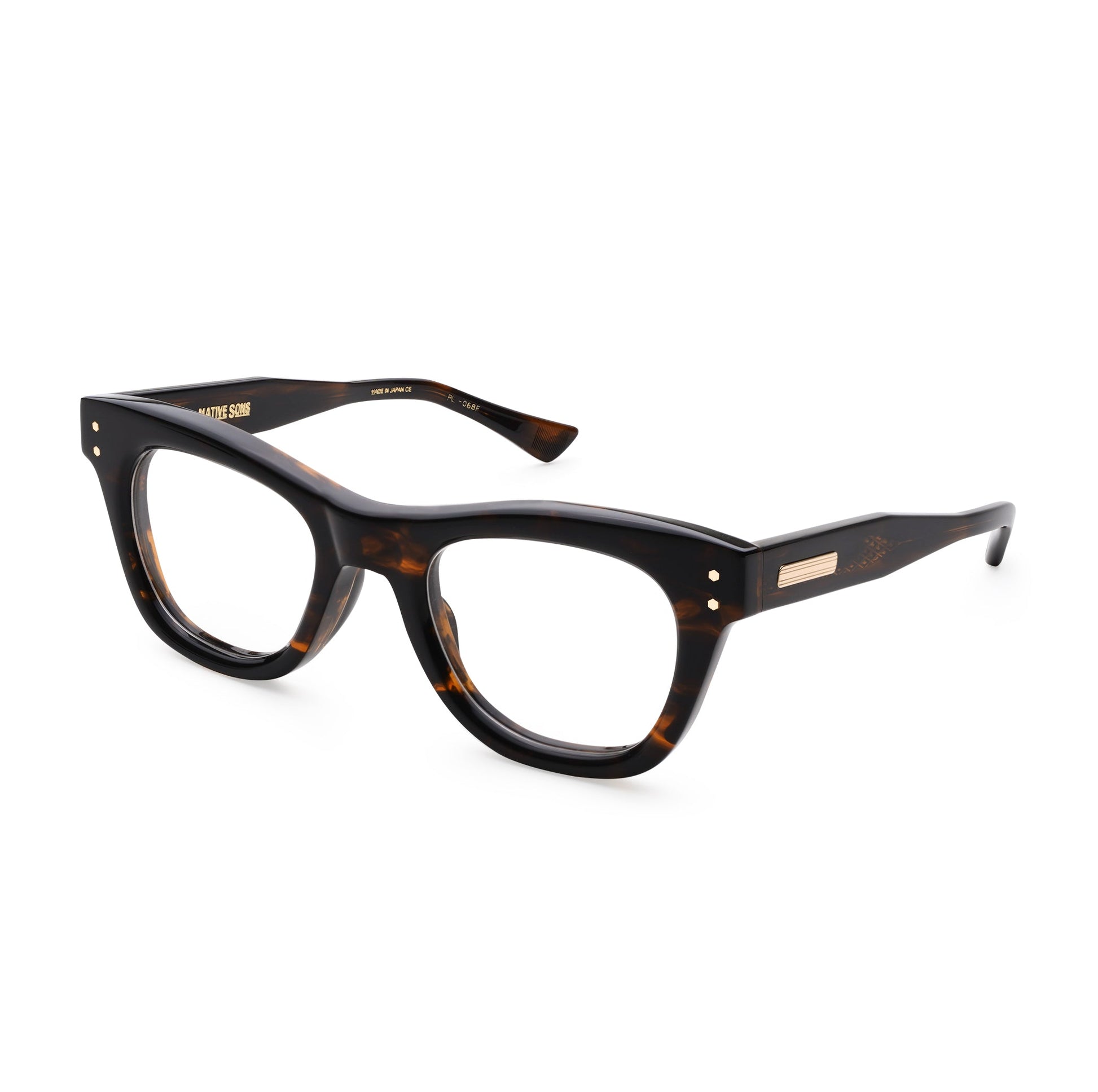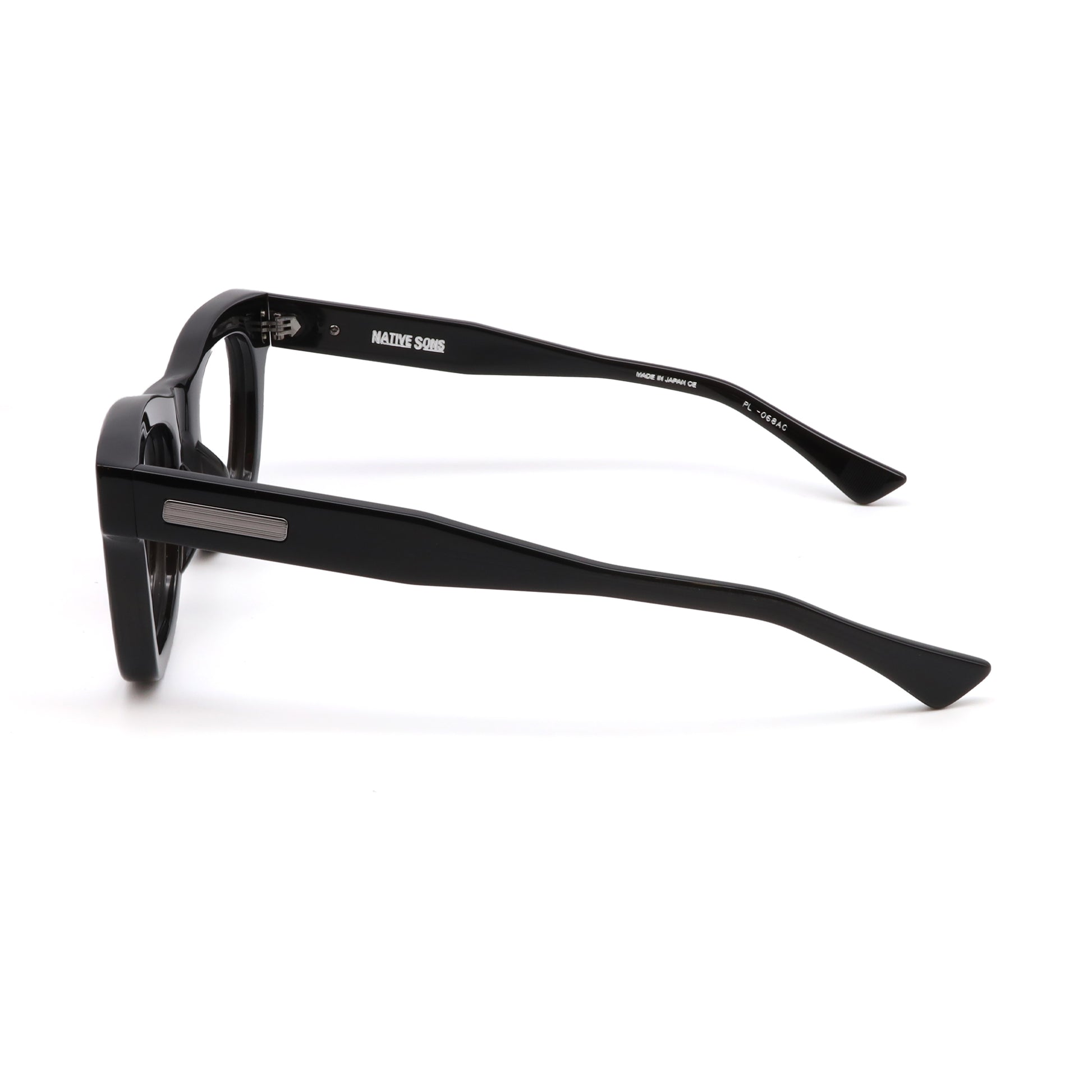 レンズは丸みのあるスクエア型で、内側に向かって傾斜があり大ぶりなサイズ。