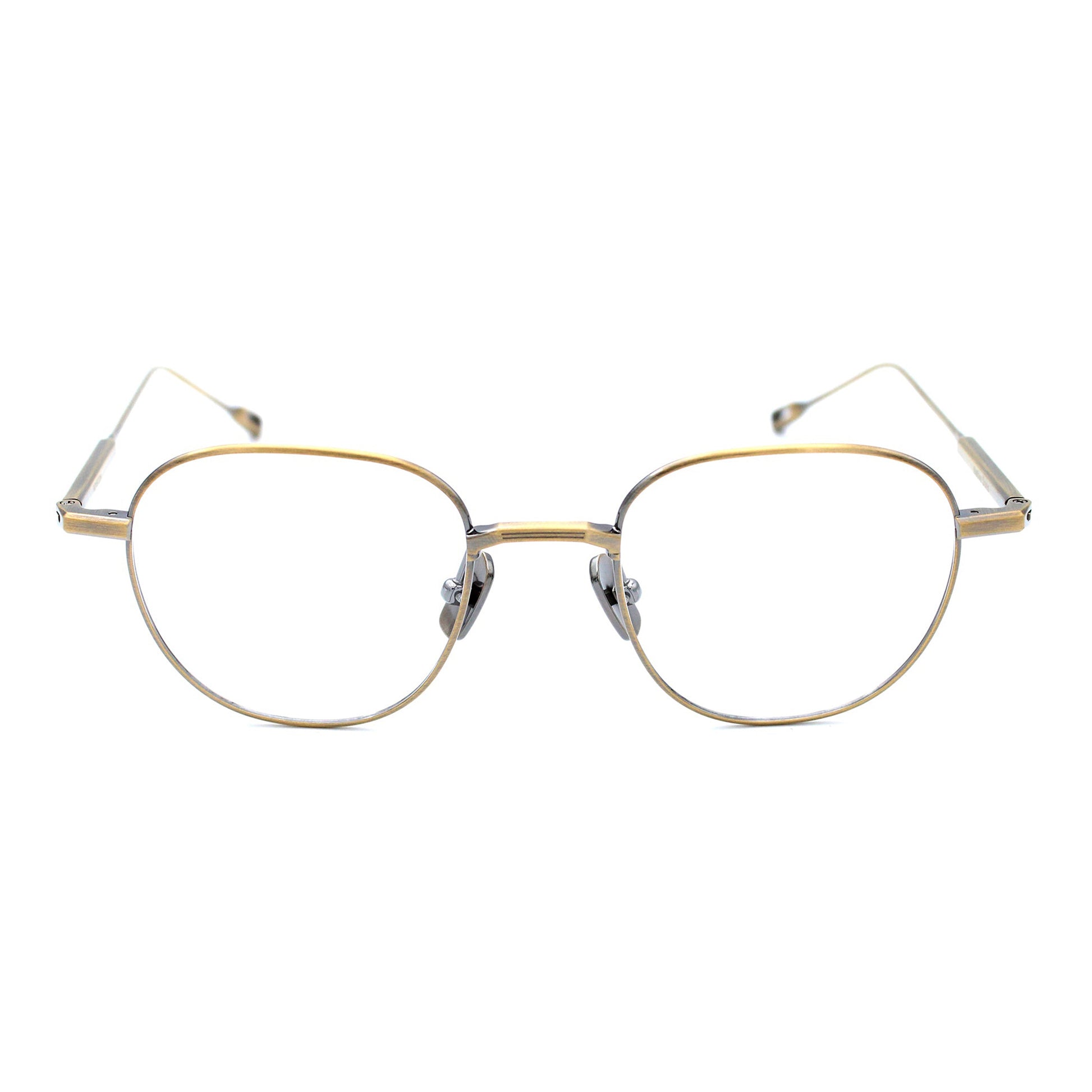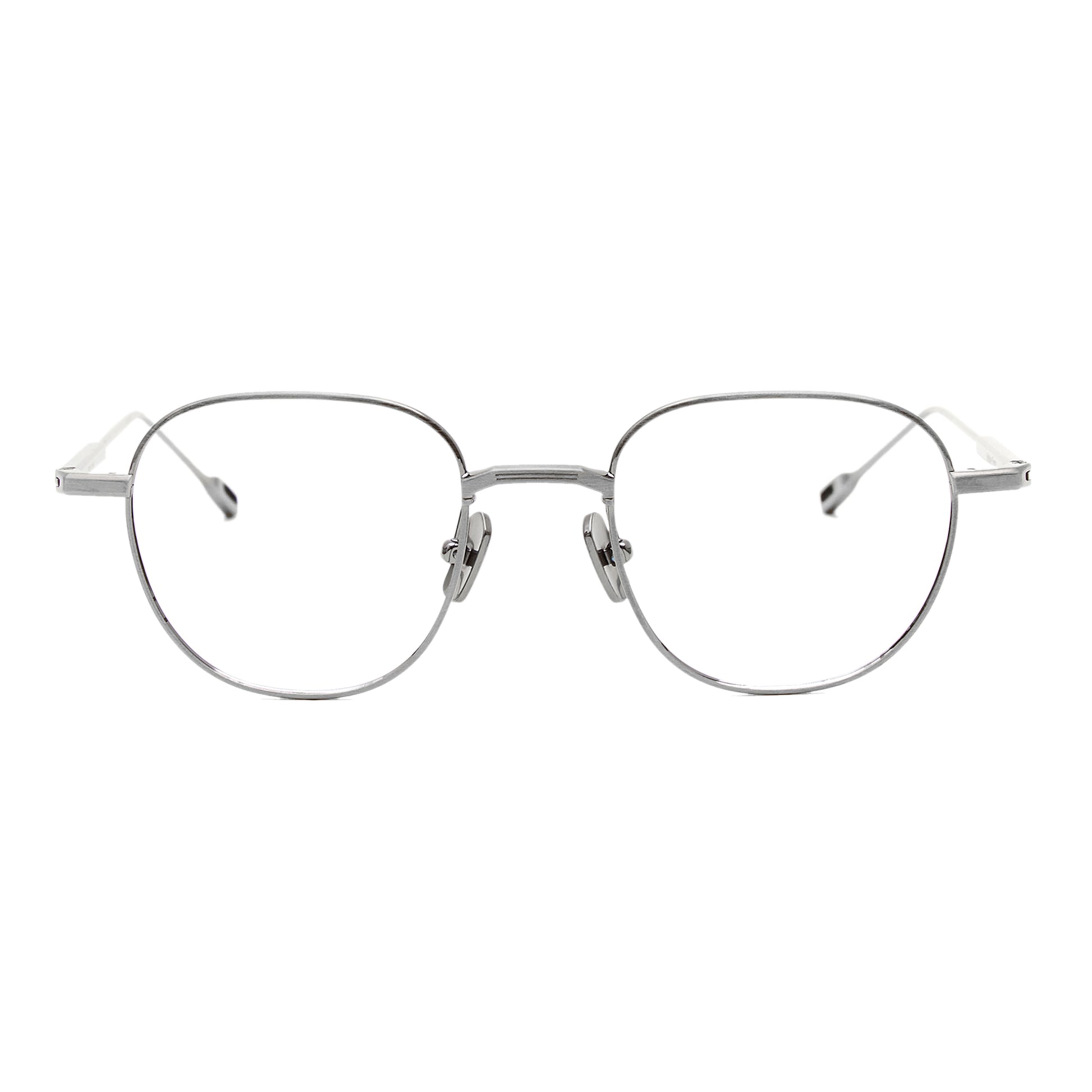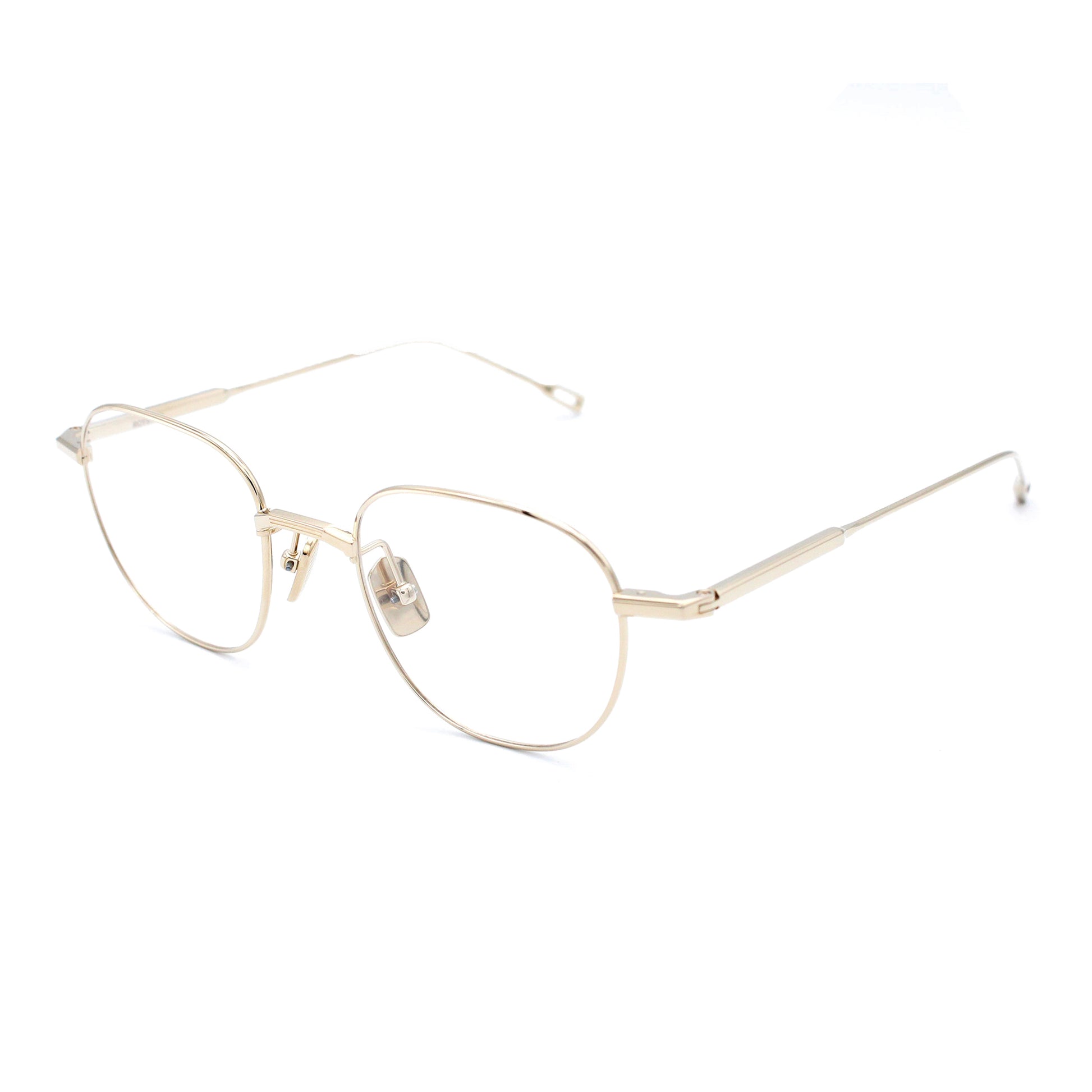 紳士的かつクリーンな印象を与える。 超軽量なストロベリー型のフレームはシームレスに多様な骨格に合う。 カシメ部分で開閉する半円のリムストック。80年代のAMステレオからインスパイアされた立体的なデザインのノーズブリッジとテンプルコネクションにも線のエッジングが施されている。