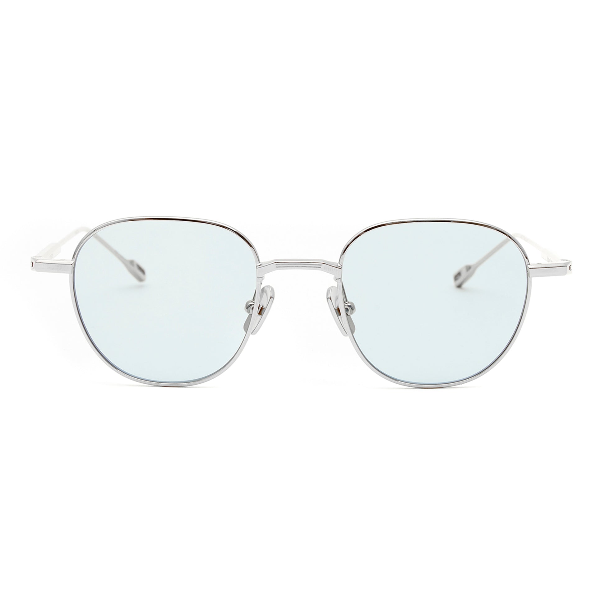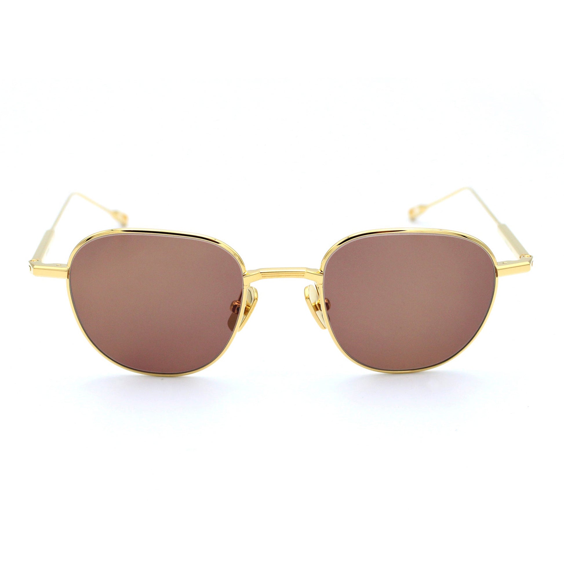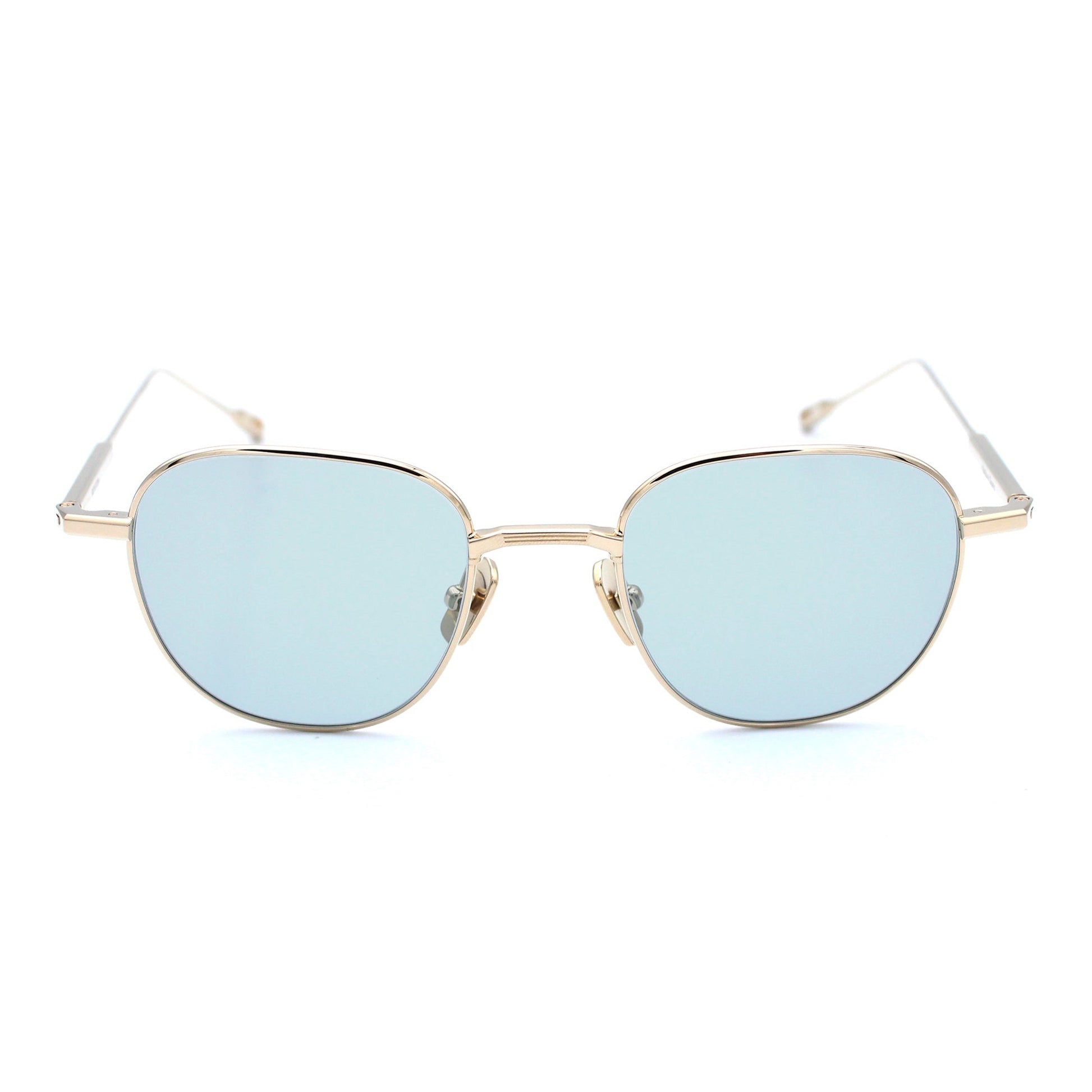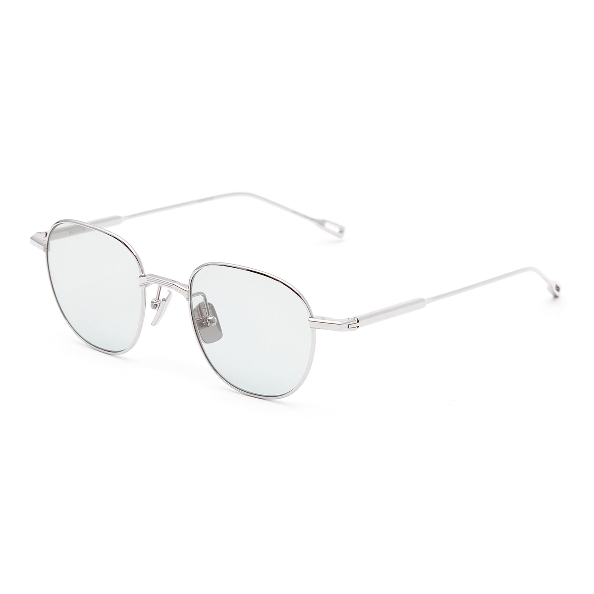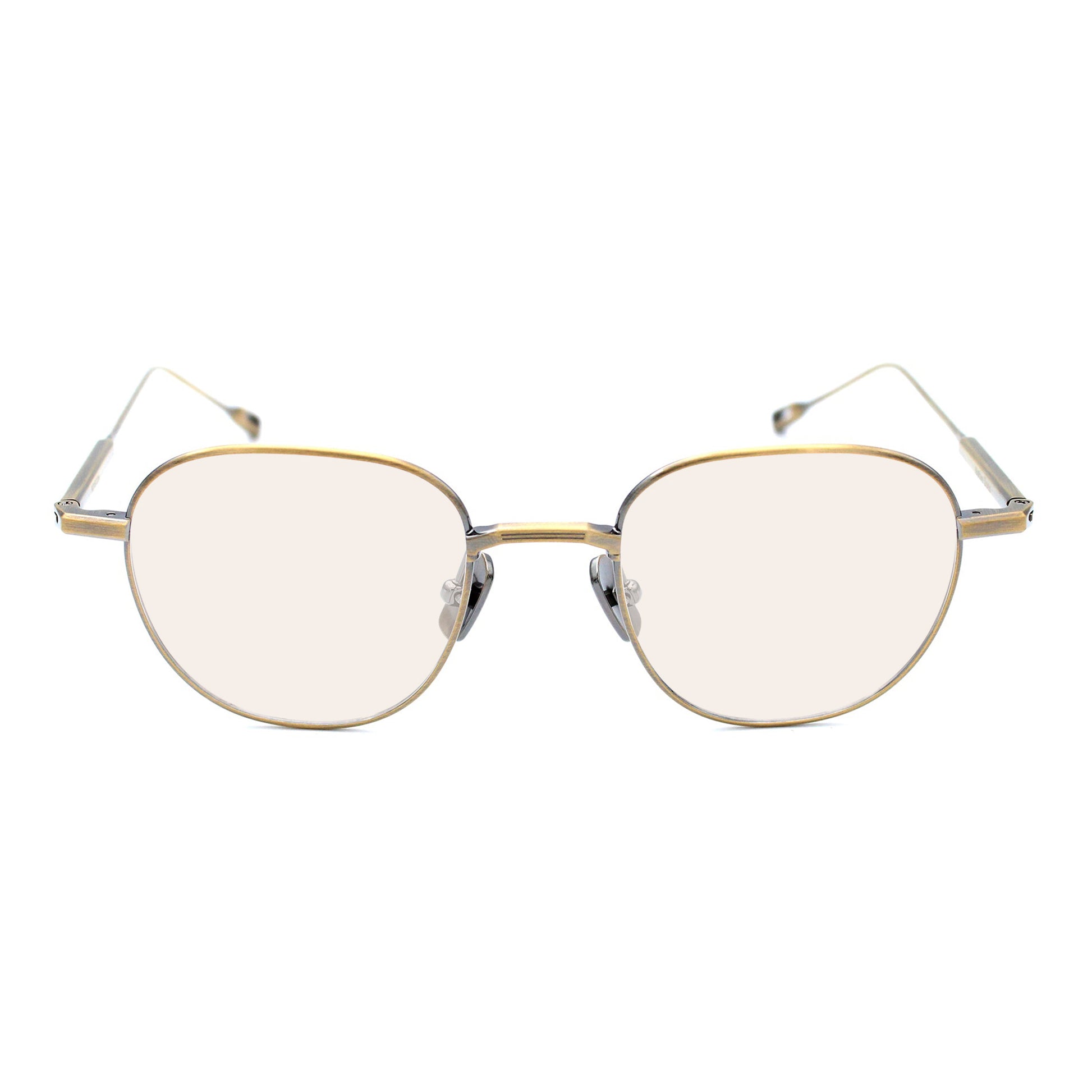 紳士的かつクリーンな印象を与える。 超軽量なストロベリー型のフレームはシームレスに多様な骨格に合う。 カシメ部分で開閉する半円のリムストック。80年代のAMステレオからインスパイアされた立体的なデザインのノーズブリッジとテンプルコネクションにも線のエッジングが施されている。